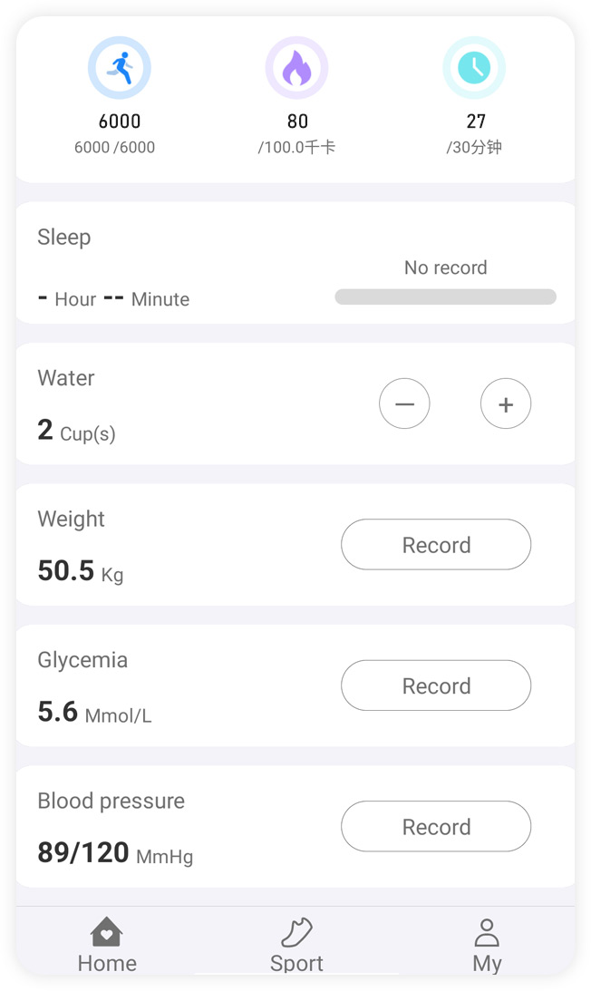 Сохранение статистики о здоровье. Время сна, количество выпитой воды, вес, артериальное давление, уровень глюкозы в крови. Вы ежедневно в курсе изменений своего здоровья.